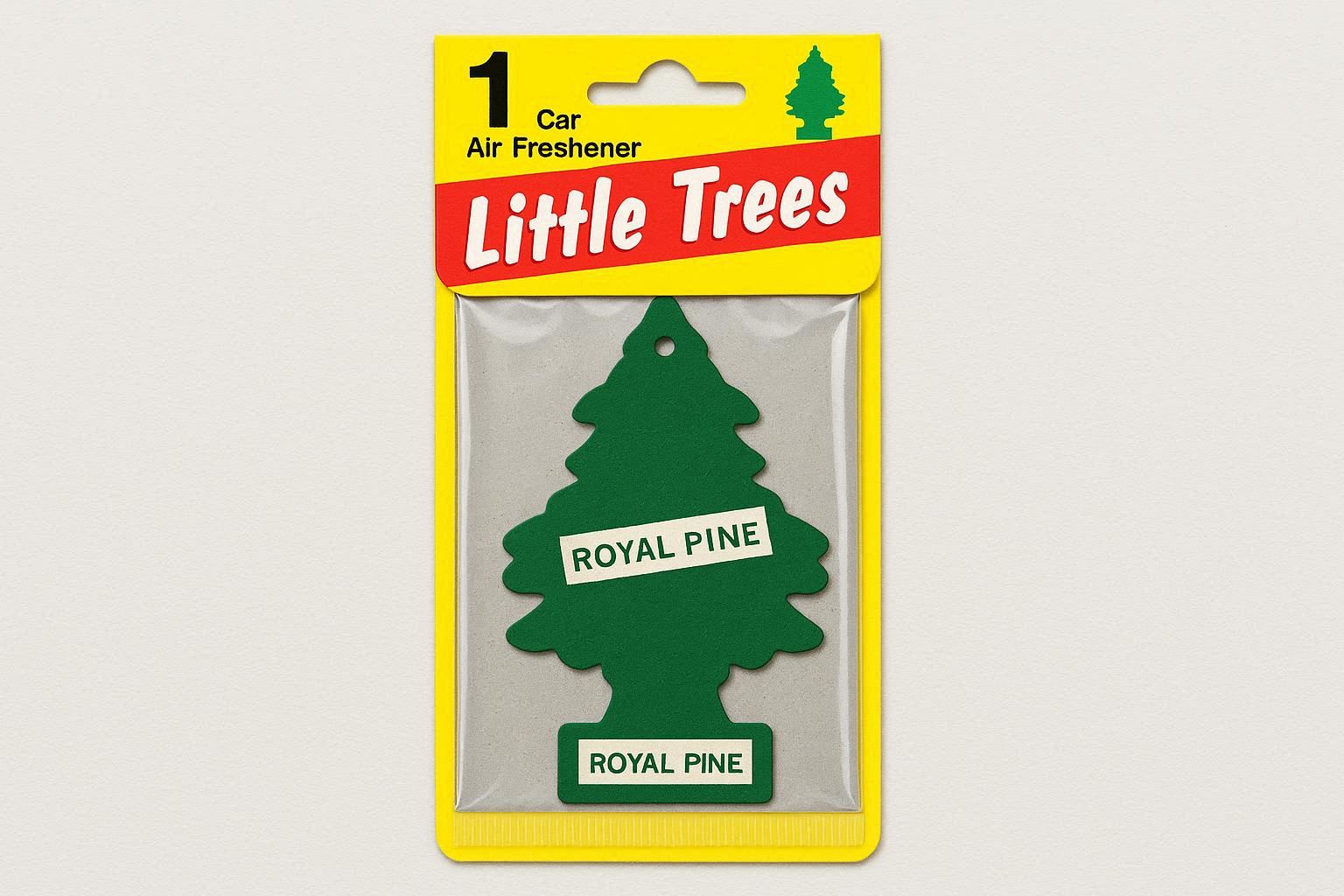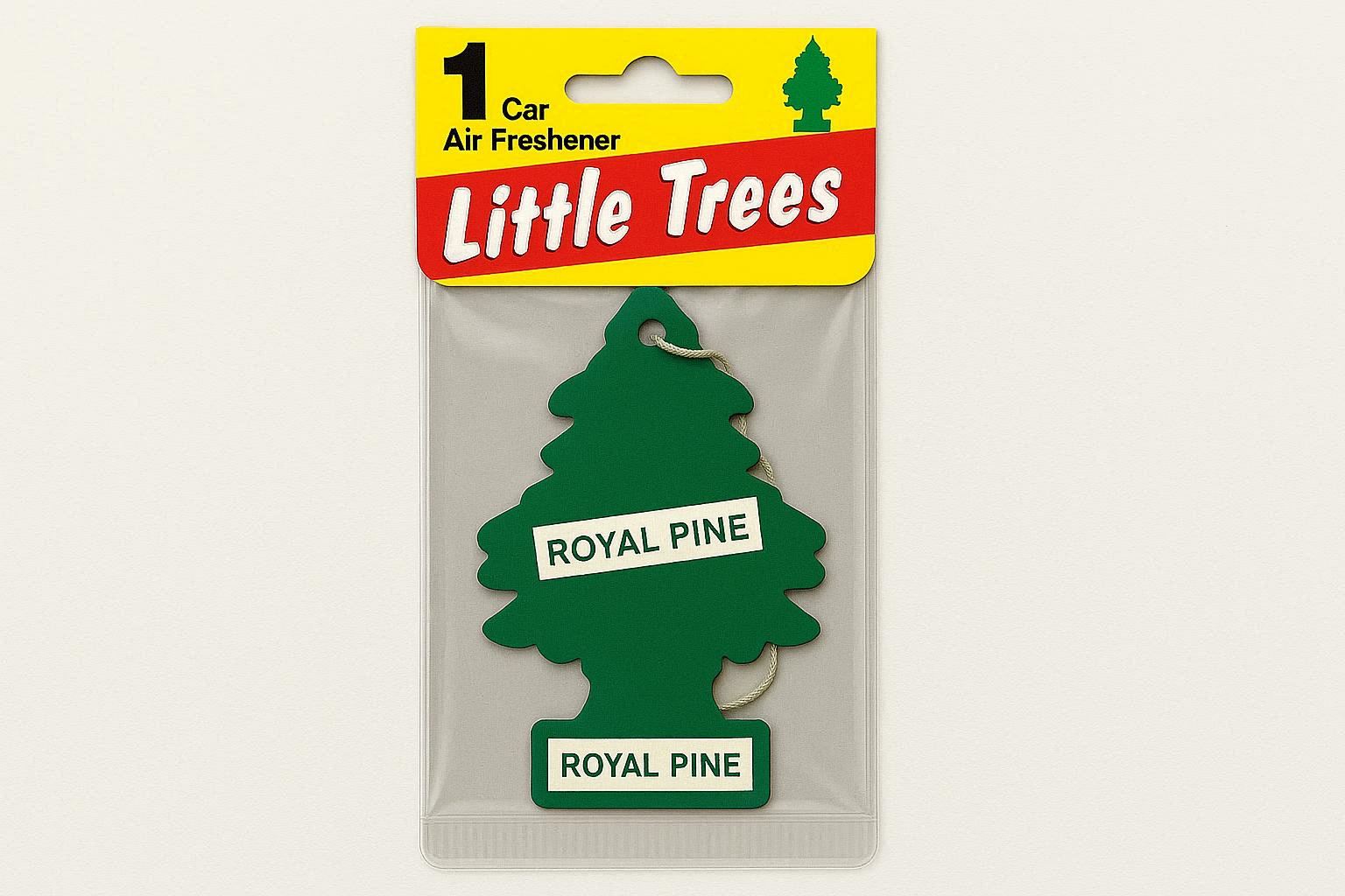 Available in a 12-pack variety box featuring 6 legendary scents: Royal Pine, New Car, Vanillaroma, Little Trees (original), Bubble Gum, and Summer Linen. The cardboard is FSC-certified, and the fragrance oils meet IFRA standards for safety.